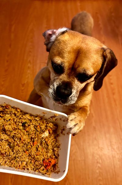 While no fresh cooked dog food is a definite 1:1 ratio to kibble, our market research has shown that it is safe to use it as such and we recommend a slightly higher ratio than kibble when used as a substitution for it. As always, it is your decision to give your furry friend as little as a quarter cup or as much of Hello Marrow as you would like per day (not to exceed the daily recommended amount of food per weight).